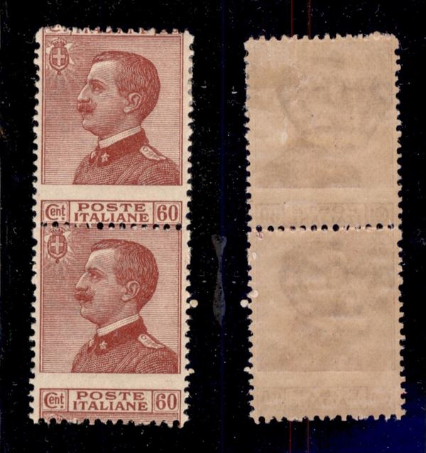 1918 - 60 cent Michetti (111kaa) - coppia verticale (valore in basso) - pezzo inferiore gomma integra (625++)