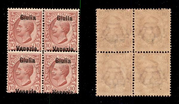 1918 - Giulia Venezia - 10 cent (22d) in quartina con Venezia a cavallo - gomma integra