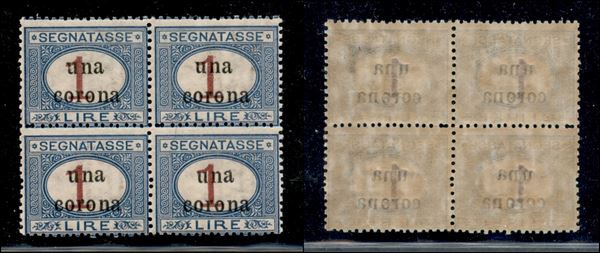 1919 - 1 corona su 1 lira (7) in quartina - gomma integra (350+)