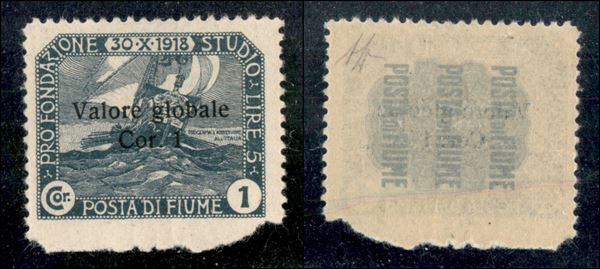 1919 - 1 corona su 1 Valore Globale (95 varietà m) non dentellato in basso - gomma integra - non catalogato