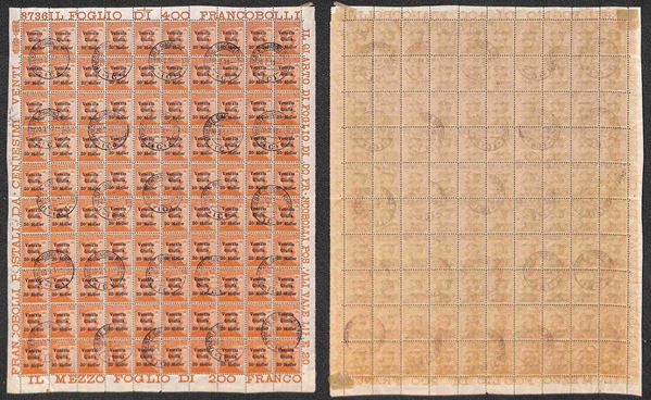 1919 - 20 heller su 20 cent (31) - intero foglio di 100 usato a Trieste 20.2.19 - notati gli errori cb + ce