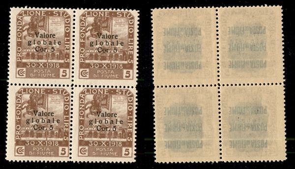 1919 - 5 corone su 5 Valore Globale (98) in quartina - gomma integra (120+)