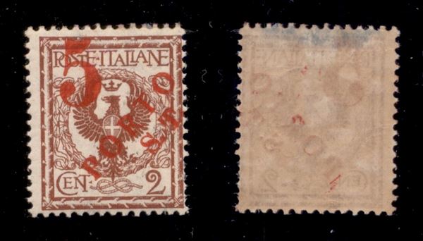 1919 - 5 Porto S.T. su 2 cent (145a) - soprastampe spaziate - gomma originale (320)