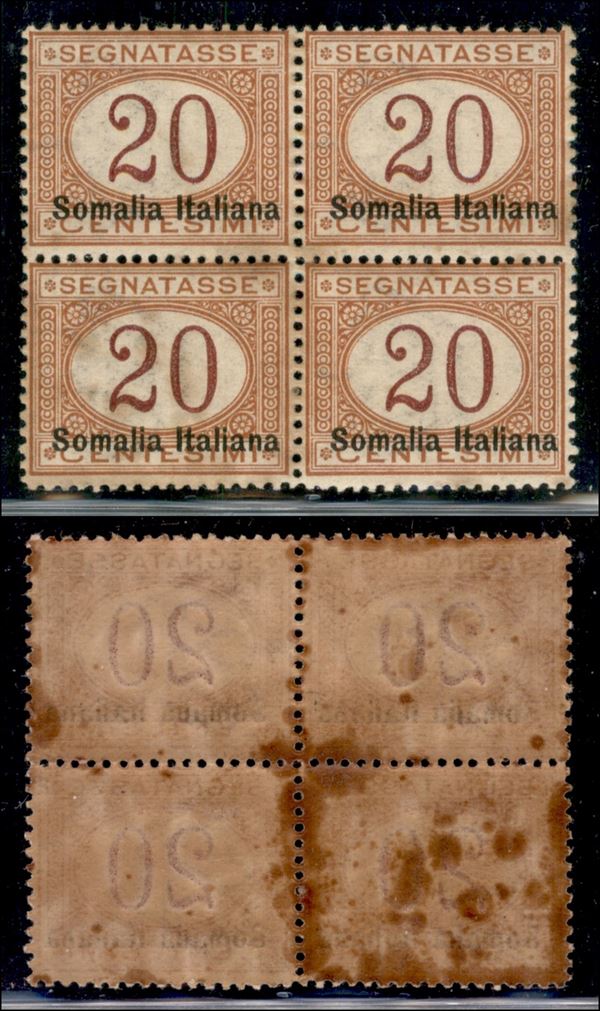 1920 - 20 cent (25) - in quartina - gomma integra (con macchie di ruggine) - ben centrata (2800++)