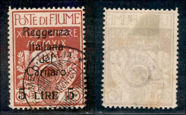 1920 - 5 lire su 10 cent (145 t) - usato - senza emblema al verso (800)