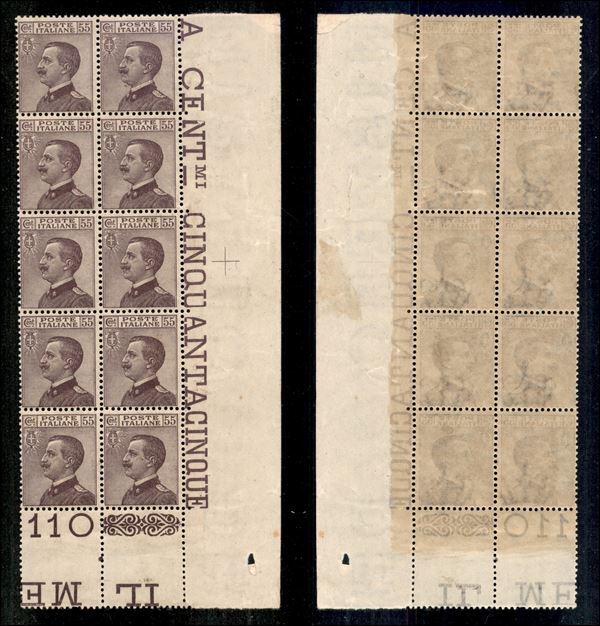 1920 - 55 cent Michetti (110) - blocco angolare di 10 con unito interspazio in basso - gomma integra (600++)