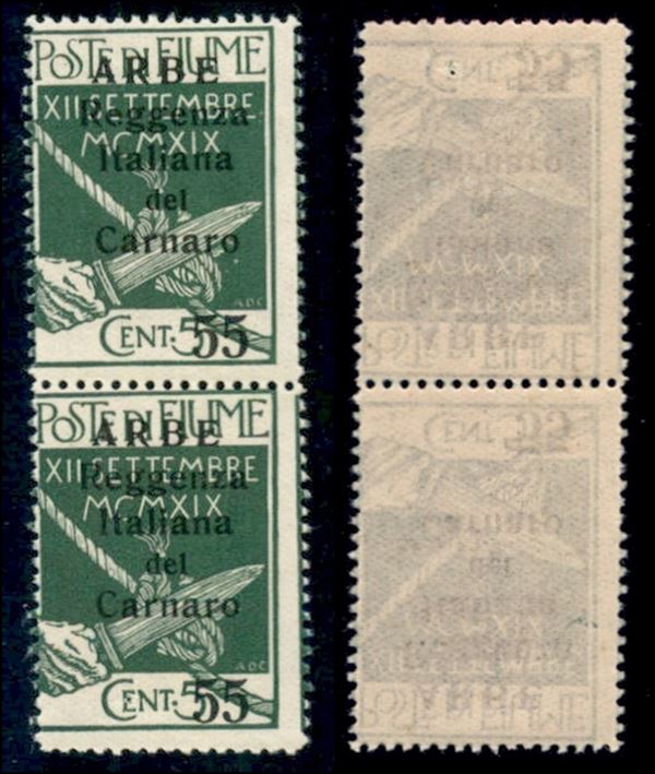 1920 - 55 cent su 5 (10) - coppia verticale - gomma integra (600)