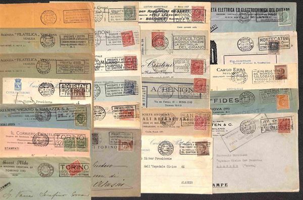 1920/1928 - Annulli a Targhetta - Insieme di 24 oggetti postali con 12 annulli diversi - alcune ripetizioni - da esaminare