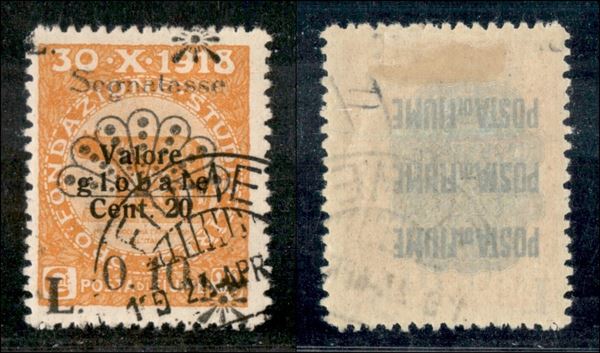 1921 - Segnatasse - 0,10 lire su 20 cent (29 - varietà) - L e X ripetuto in alto a sinistra (a cavallo) - usato - non catalogato