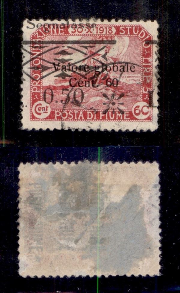 1921 - Segnatasse - 50 cent su 60 (22 - varietà sda) usato - soprastampa in alto e a sinistra - gomma parziale - non catalogato