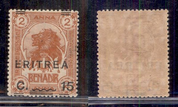1922 - 15 cent su 2 anna (57c) con sbarrette a cavallo - gomma integra (165)