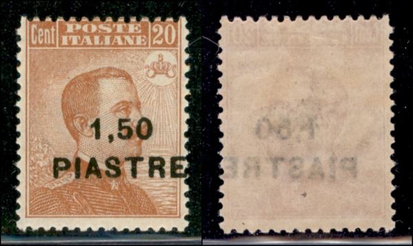 1922 - 1,50 piastre su 20 cent Michetti (50 varietà) - soprastampa a destra - gomma originale (150)
