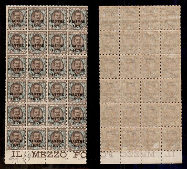 1922 - 18,75 piastre su 1 lira (55) - blocco di 24 bordo foglio - gomma integra (420+)