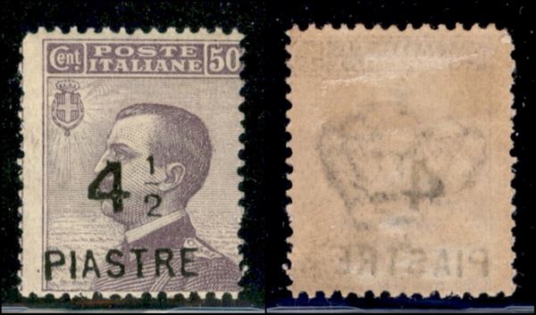 1922 - 4 e 1/2 piastre su 50 cent Michetti (62 bb) - piastre obliquo - gomma originale