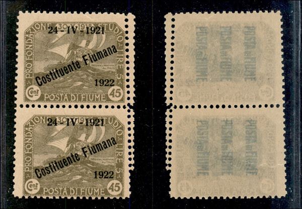 1922 - 45 cent (193x varietà) - coppia verticale con doppia dentellatura obliqua a destra - gomma integra con lievi falle naturali (150+)