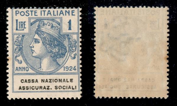 1924 - 1 lira Assicuraz. Sociali (29) - gomma integra (275)