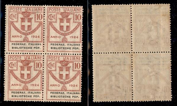 1924 - 10 cent Biblioteche Pop. (34) in quartina - gomma integra (300+)