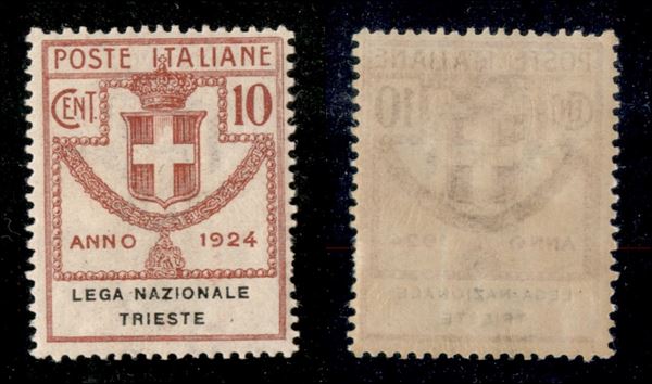 1924 - 10 cent Lega Naz. Trieste (43) - gomma integra - dentellatura carente a destra (300)