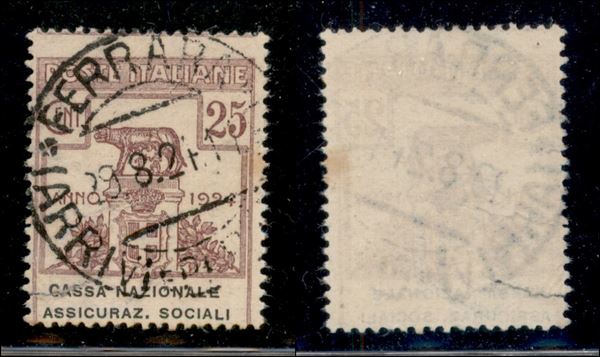 1924 - 25 cent Assicuraz. Sociali (26) usato - dentellatura orizzontale spostata