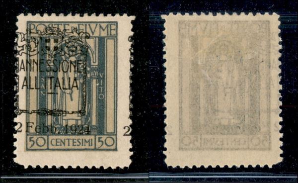 1924 - 50 cent Annessione (220f varietà) - soprastampa a sinistra (2 a destra) - non catalogato