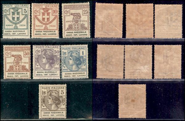 1924 - Cassa Nazionale Assic. Inf. Lavoro (17/23) - serie completa - 25 cent + 50 cent con abrasioni sulla gomma - gomma integra