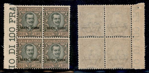 1925 - 10 lire Floreale (15) in quartina - gomma integra (500+)