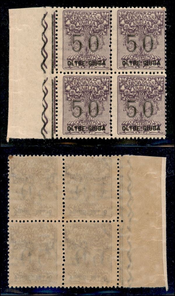 1925 - 50 cent (3 - varietà) - quartina bordo foglio - soprastampe oblique - gomma integra - non catalogato