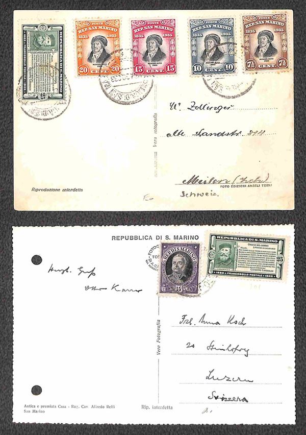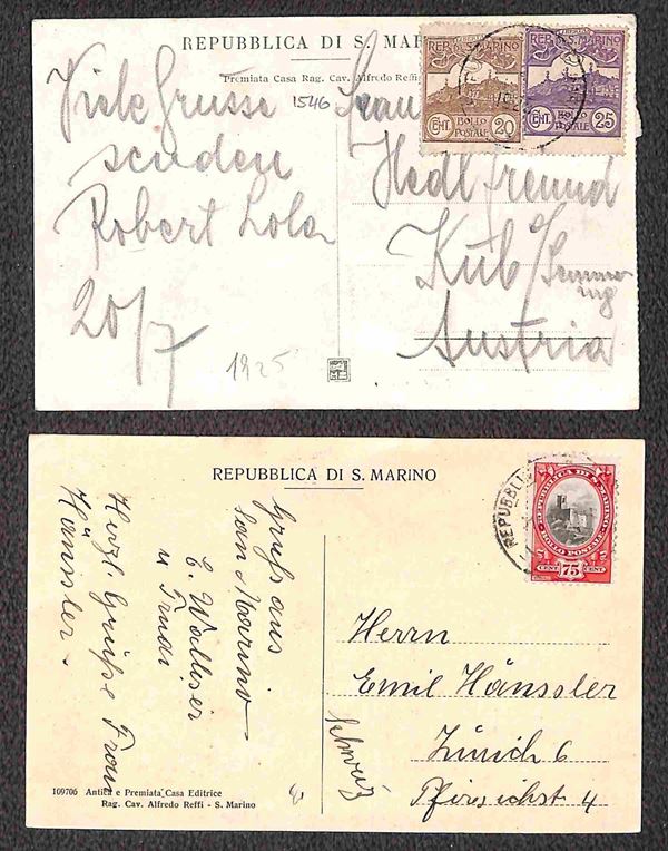 1925/1930 - Insieme di 4 cartoline con diverse affrancature dirette in Svizzera e una in Austria