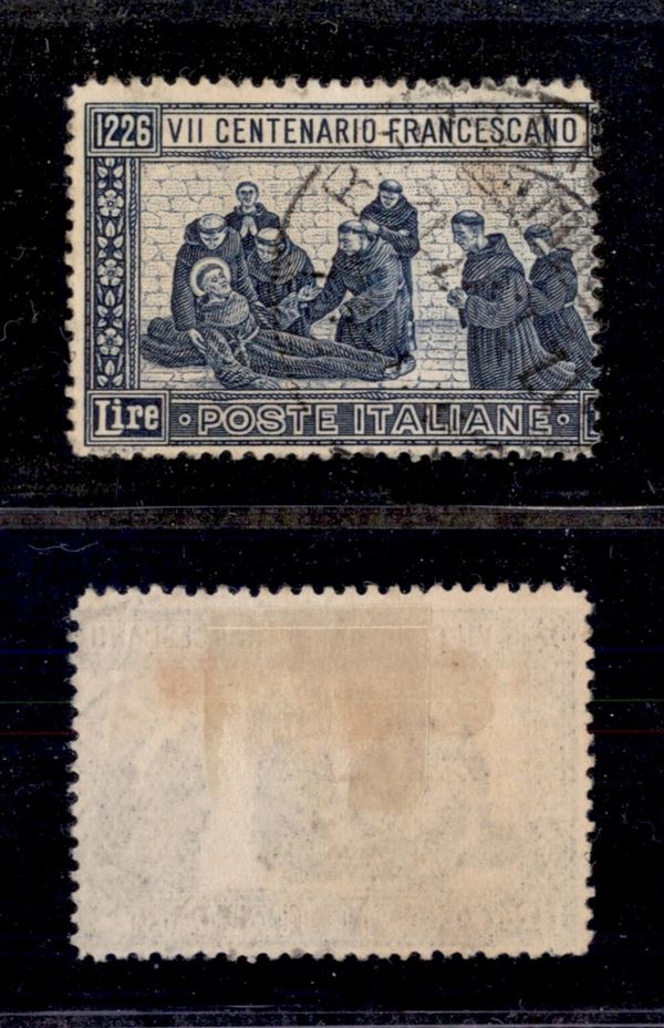 1926 - 1,25 lire S. Francesco (196) senza valore - dentellatura verticale destra spostata - non catalogato - cert. AG