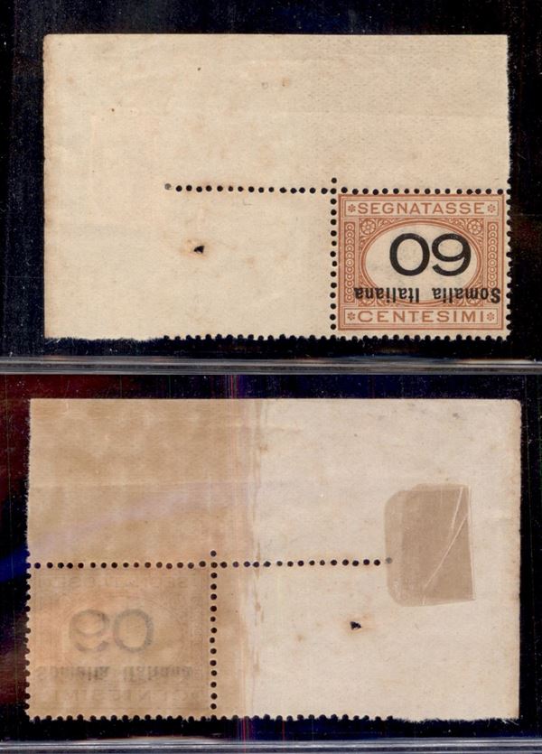 1926 - 60 besa (47a) angolo di foglio con soprastampa e cifra capovolta - gomma integra - cert. AG (600+)