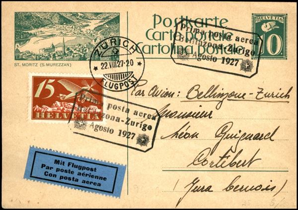 1927 (22 agosto) - Bellinzona Zurigo - cartolina postale per Cortibert