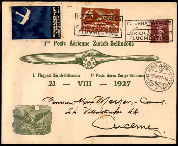 1927 (22 agosto) - Zurigo Bellinzona - aerogramma per Lucerna