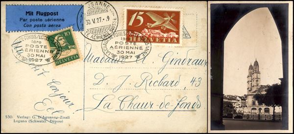 1927 (30 maggio) - Cheux de Fonds Locle Lausanne - cartolina del volo