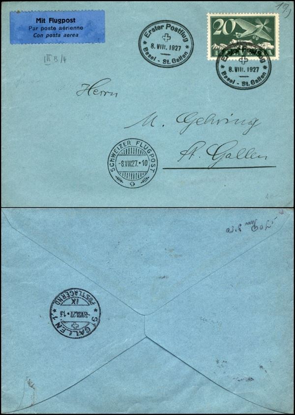 1927 (8 agosto) - Basel St. Gallen - Schweizer Flugpost - aerogramma del volo