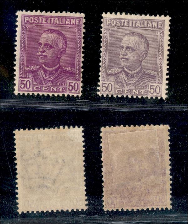 1928 - 50 cent Parmeggiani (225+225a) - lilla violetto + violetto - gomma originale (128)