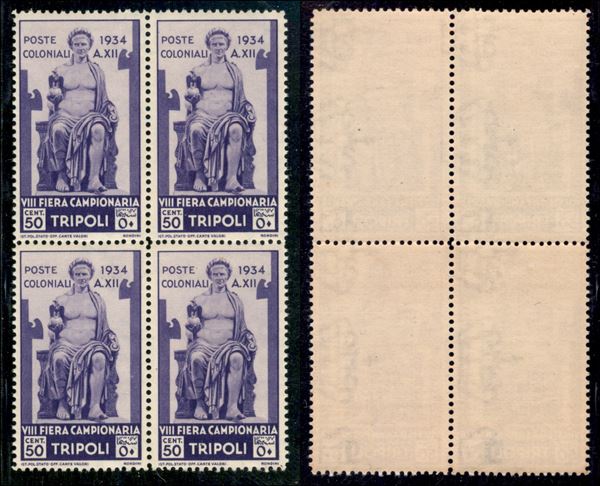 1934 - 50 cent Ottava Fiera (129) - in quartina - gomma integra (180+)