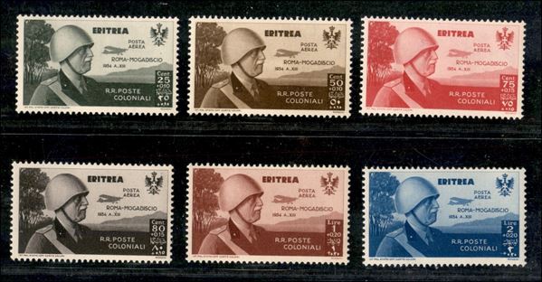 1934 - Volo Roma Mogadiscio (A7/12) - i primi 6 valori della serie - gomma integra