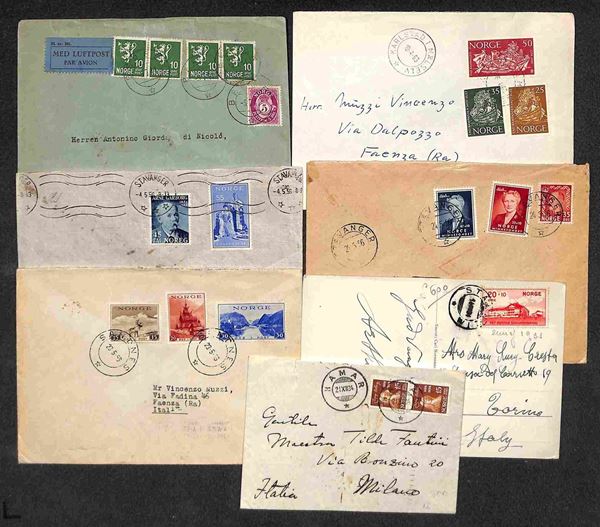 1934/1963 - Sei buste e una cartolina per l’Italia con affrancature del periodo