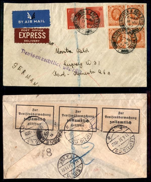 1937 (11 luglio) - aerogramma espresso da Brighton a Lipsia