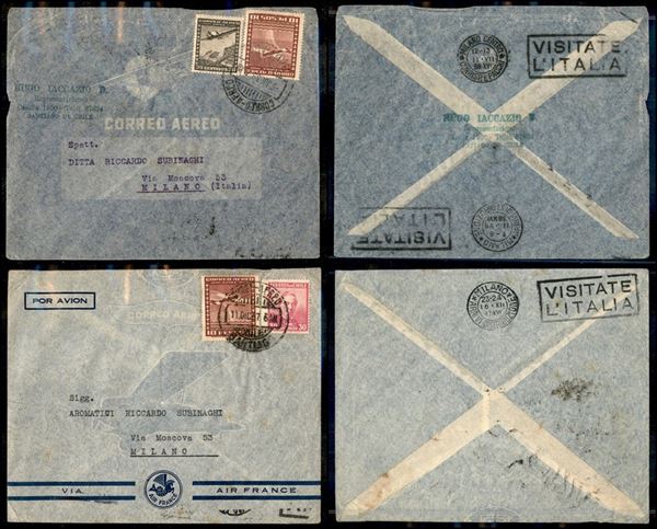 1937/1938 – due aerogrammi da Santiago del Cile per Milano (198+202+215)