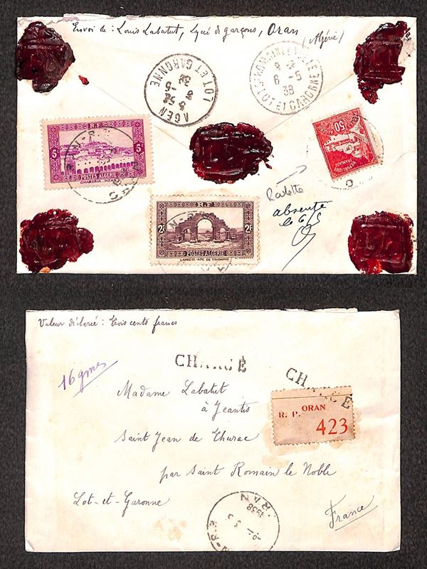 1938 - Raccomandata da Oran a Saint Roman le Noble del 55.5.38 - chargè al fronte