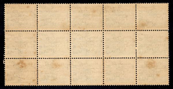 1939 - 1 qind (1) - blocco di 15 con soprastampa inclinata (e spostata a sinistra) - gomma integra (con qualche leggero ingiallimento) - non catalogato