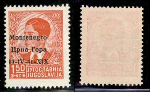 1941 - 1.50 din (3i varietà pp) - soprastampa a sinistra + errore 1V/X1X - gomma integra