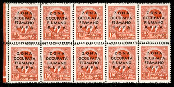 1941 - 1,50 din (4) - blocco di 10 - gomma integra