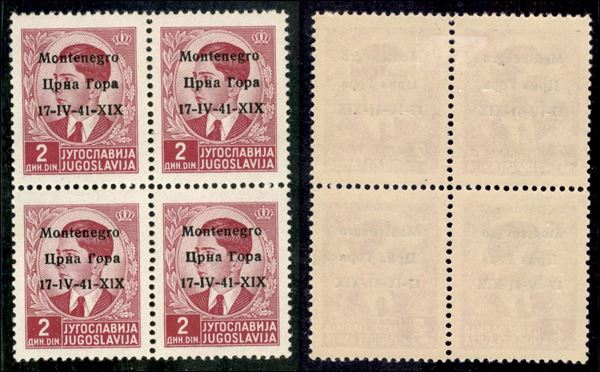 1941 - 2 din (4 tre + 4pp) - quartina - errore 1V+X1X in basso a sinistra - coppia superiore gomma originale coppia inferiore gomma integra