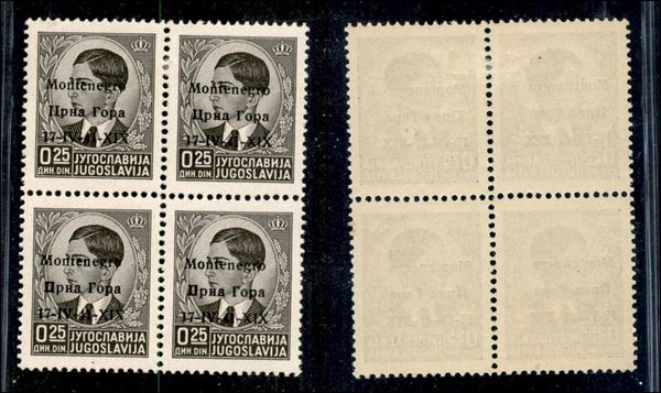 1941 - 25 para (1+1pa+1+1pc) in quartina - errori X1X+1V a destra - gomma originale - coppia inferiore gomma integra (133+)
