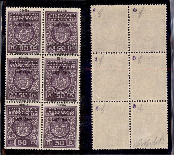 1941 - 50 para (6h + 6i) - blocco di sei - coppia inferiore senza R. Commissariato e Rombi - gomma integra - G. Bolaffi (780++)