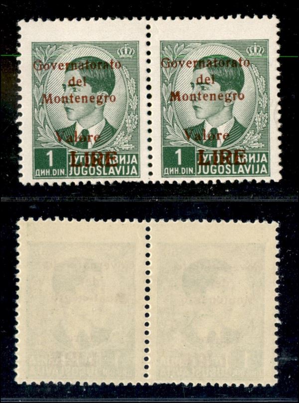 1942 - 1 din (50+50d) in coppia - M grassetto a destra - gomma integra (210+)