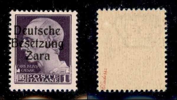 1943 - 1 lira (9e) - soprastampa a sinistra - gomma integra - Ludin