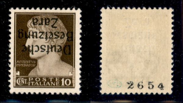 1943 - 10 cent (2b) con soprastampa capovolta - gomma integra